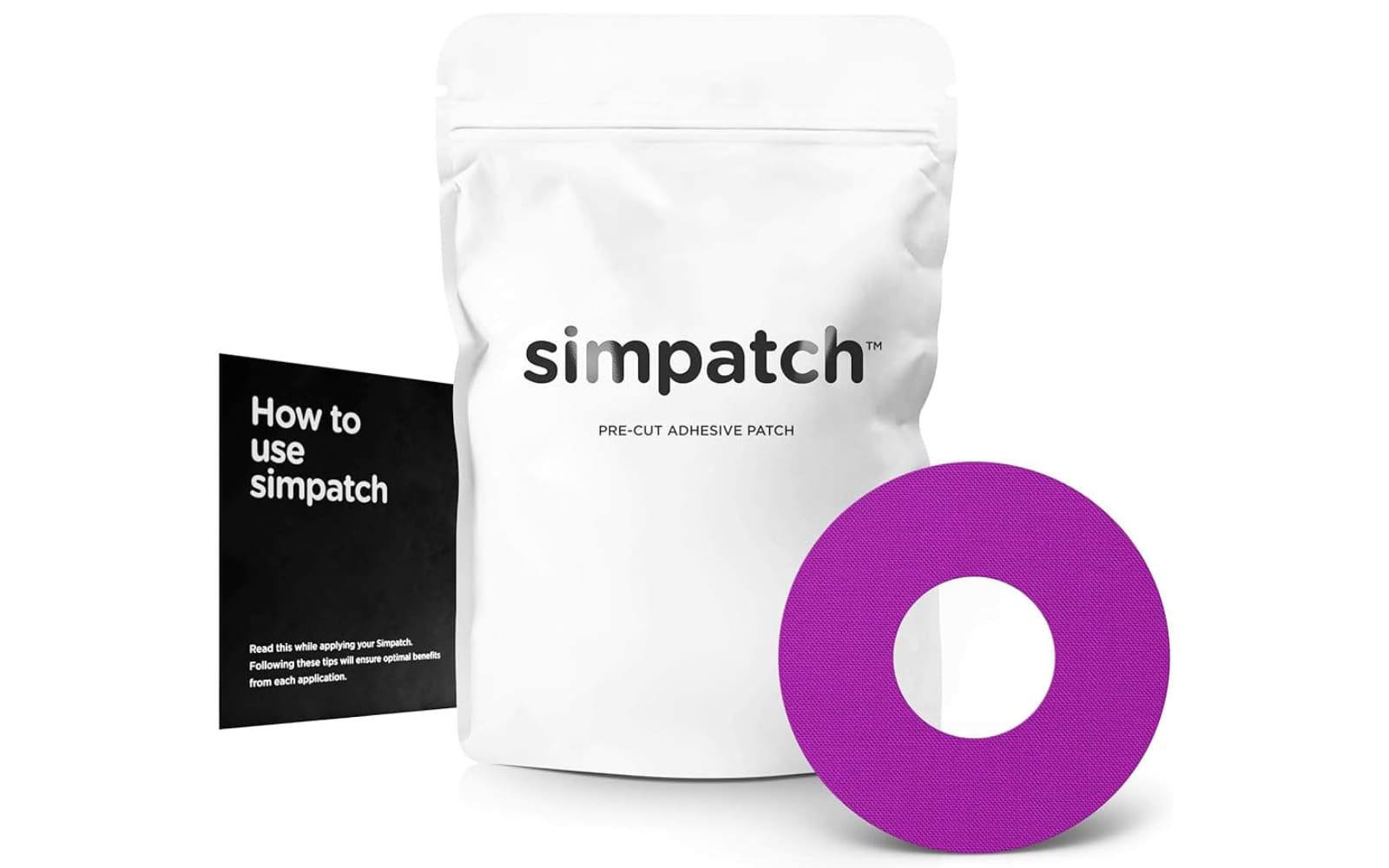 Applying a Simpatch patch is simple: clean and dry the skin, peel off the backing, and press the patch firmly over your CGM or infusion set—similar to applying a Band-Aid.